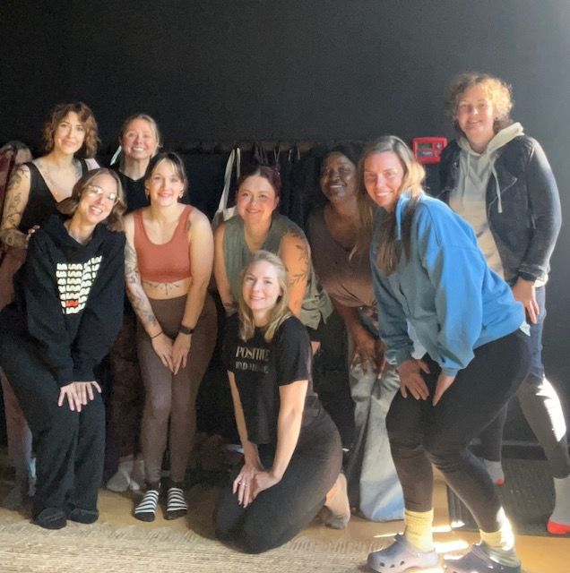 The facilitators reppping some swag of the studio location where this was hosted. The workshop included a combination of movement developed by Dr. Bercell and Martha Graham to create ultimate release. We reviewed breathing, tapping and bi-lateral stimulation. Everyone left with a personalized toolkit!